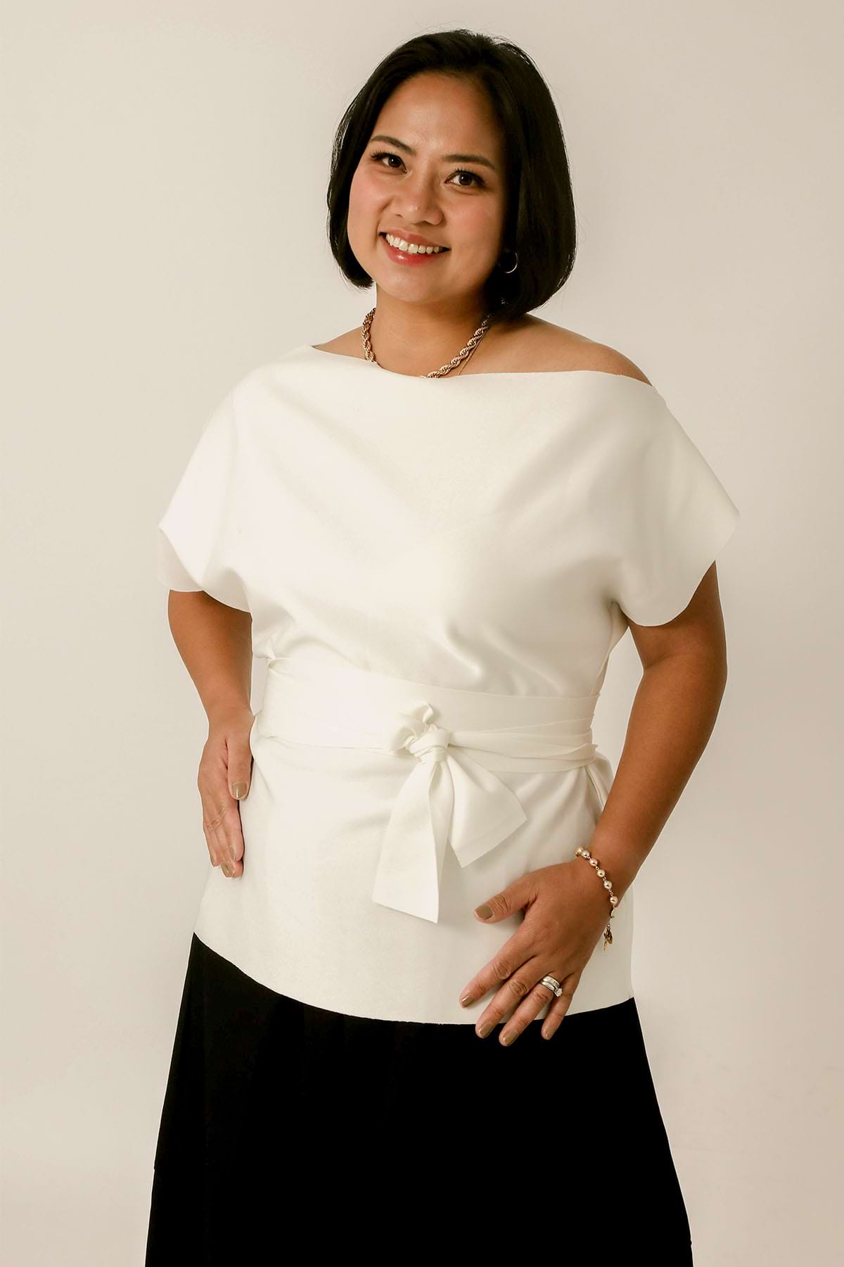 Feminine and pristine, ready to take on a busy day from morning until night. The Freya Top could be worn as an off-shoulder or boatneck top.Â